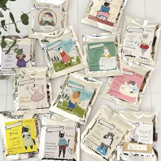 ドリップバッグのイラストはすべて、LOVE&Co.さんが描いた実在の保護猫たちです。